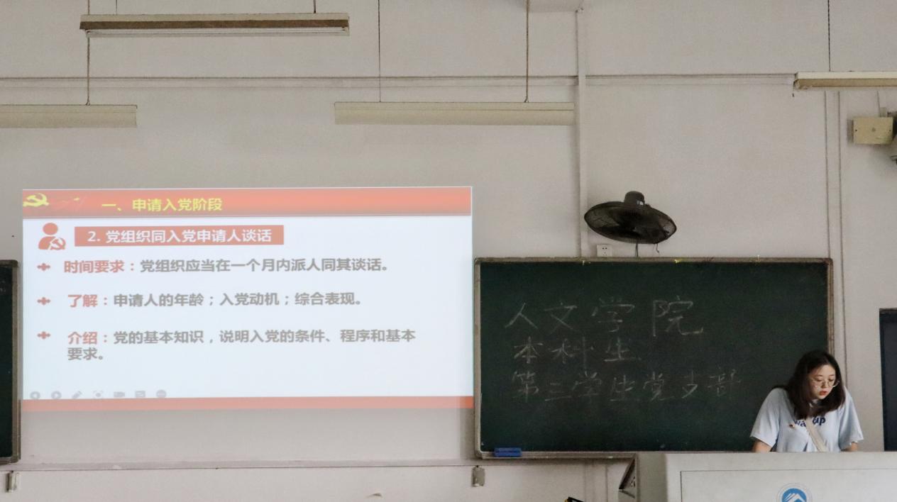 此次活动中,党员同志深入新生班级,充分发挥了党支部和学生班级间的桥梁纽带作用,向同学们详细介绍了加入中国共产党的条件和程序。党员同志还就入党动机进行了座谈,引导学生端正入党动机,保持持久不衰的动力,以实际行动争取早日入党。此外,党员同志对新生提出的一系列问题给予了详细的解答,在广大学生心中树立了良好的党员形象,充分发挥了党员的先锋模范作用。