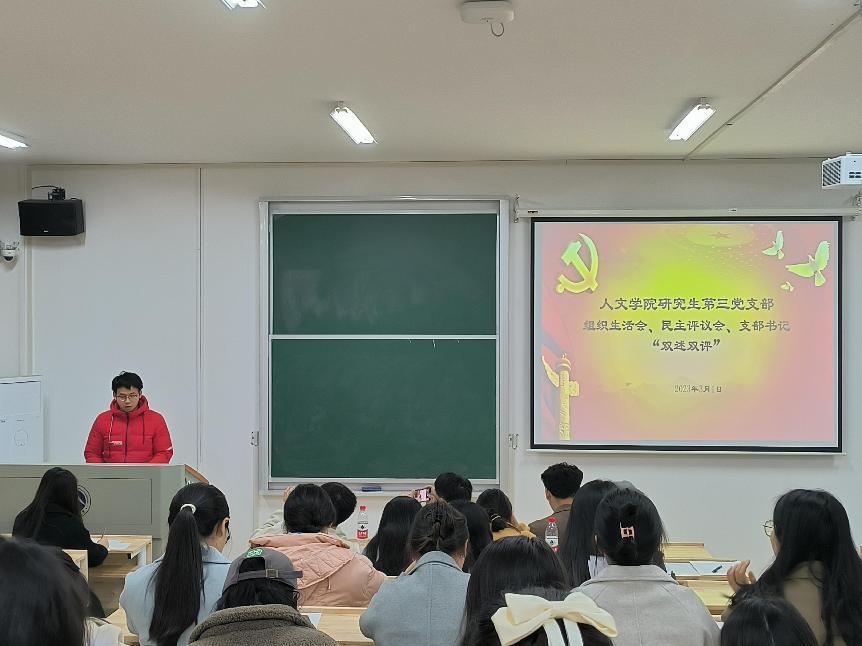 3月1日晚,环亚官方网页版研究生第三党支部组织生活会、民主评议会、支部书记“双述双评”会在我校雨湖校区2教101教室召开。环亚官方网页版党委委员、副院长袁星洁教授、第三党支部32位正式党员以及5位群众代表参加会议。