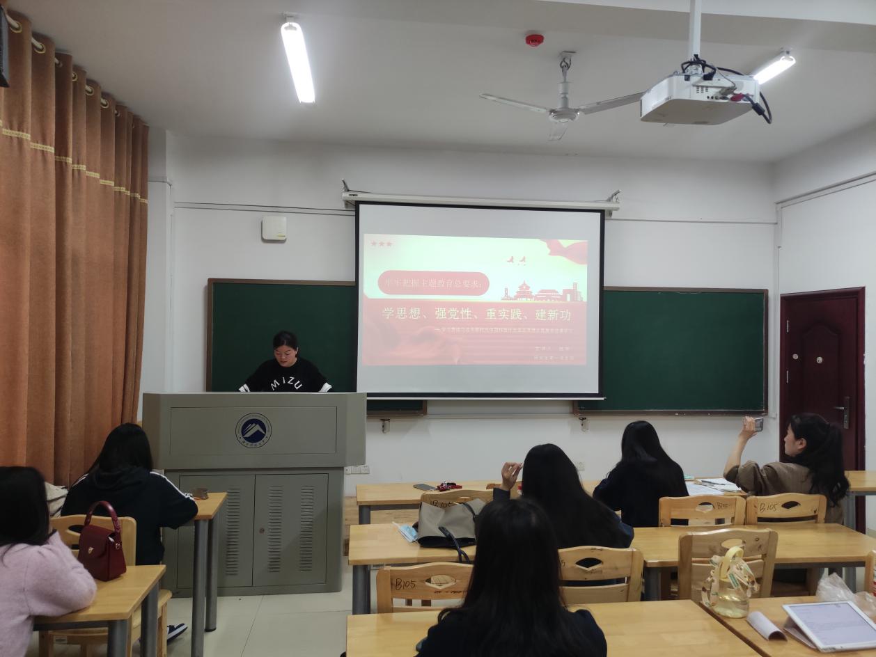 2023年5月23日上午10点,环亚官方网页版研究生第一党支部在立言楼B105教室召开了五月主题党日暨支部书记上党课活动,支部书记赵华老师为全体党员上党课。