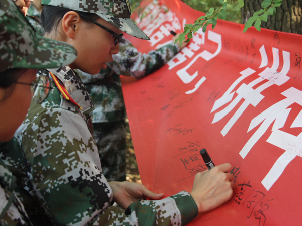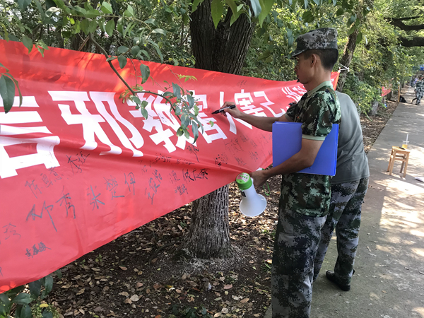 古有签字画押,今有环亚官方网页版签字为证。新生们表情严肃,拿起马克笔,郑重地在横幅上签下了自己的名字,这不仅是一种共识行为,更承载着新生们无比坚强的意志和诺允。在场的教官也纷纷参与到活动当中来,“这样的活动很有意义,现在邪教势力无孔不入,开展这样的活动能让学生增强对邪教的正确认识,净化他们的精神世界。”我院军训教官连长王阳也竖起大拇指为反邪教活动点赞。