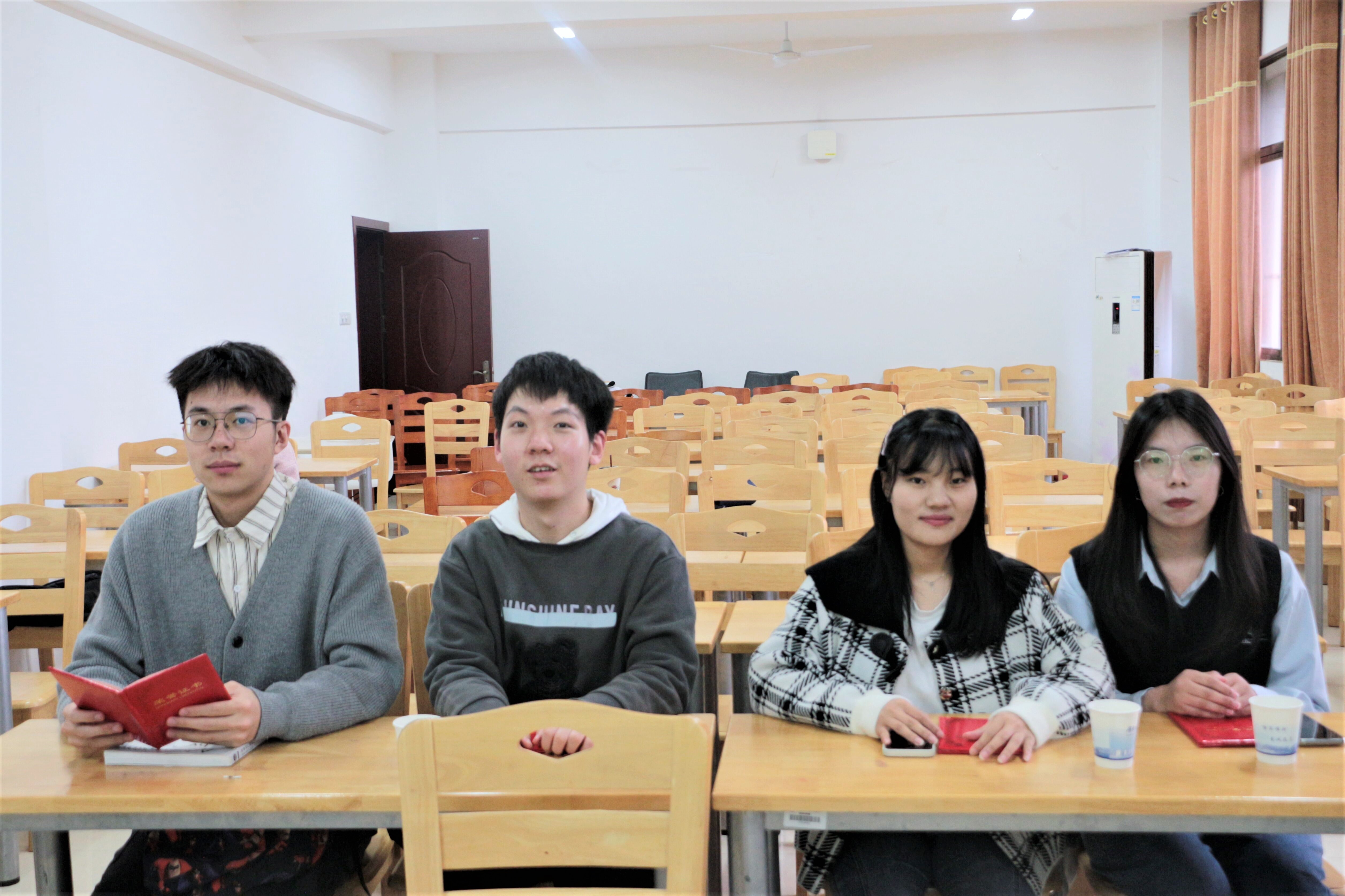 随后,已被相关学校录取为研究生的优秀学生代表依次就学习与生活两方面分享自己的经验与感悟。被中南大学录取的19级广告学一班的李赞在分享自己的英语学习方法和备考经验时指出:“要跳出自己的舒适圈,去剖析自己”;被华中师范大学录取的19级历史一班吴有飞总结出坚持就是胜利,在学习中要做好选择、劳逸结合的经验;被上海师范大学录取的19级汉语言文学专业的李世浩则表示备考要打好基础,考研需坚持;被南京师范大学19级历史一班的卢东玥则从院校选择、备考经验等方面进行分享,重点强调在备考过程中,要做好时间规划,查漏补缺,调整好心态。