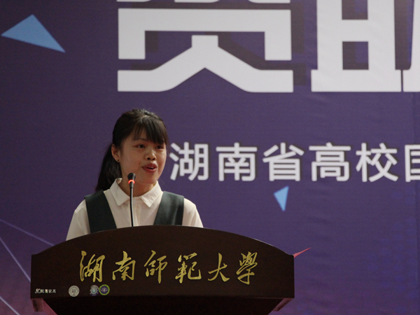 环亚官方网页版15级汉语言专业吴玉容劈波斩浪经过层层选拔,成为首次报告会五位报告人之一,向在场的包括湖南中医药大学、湖南商学院、湖南财政经济学院、湖南第一师范学院、湖南涉外经济学院、长沙医学院、湖南师范大学在内的7所高校的老师、学生代表讲述自己的成长经历、奋斗历程。