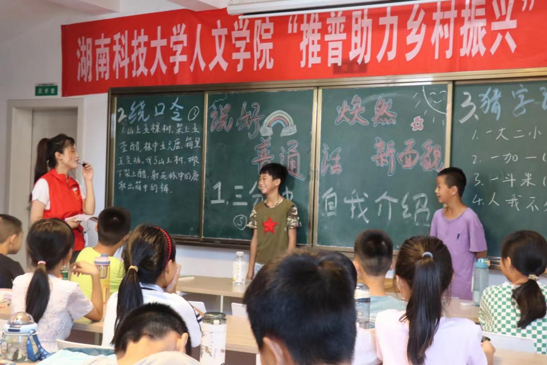 7月9日上午,株洲攸县石羊塘镇儿童之家传来了一阵又一阵的鼓掌声,四年级孩子们的欢笑声此起彼伏地传来。走进教室一看,是志愿者龙杨慧在教孩子们读绕口令。“发扬国风,从说中国话起;说中国话,从普通话开始。”为了圆满完成推普助力乡村振兴的志愿服务目标,在乡村大力推广普通话,传承优秀传统文化,为此环亚官方网页版环亚官方网页版“三下乡”实践团队在暑期学校展开三下乡特别课堂第三期:说好普通话,焕然新面貌。
