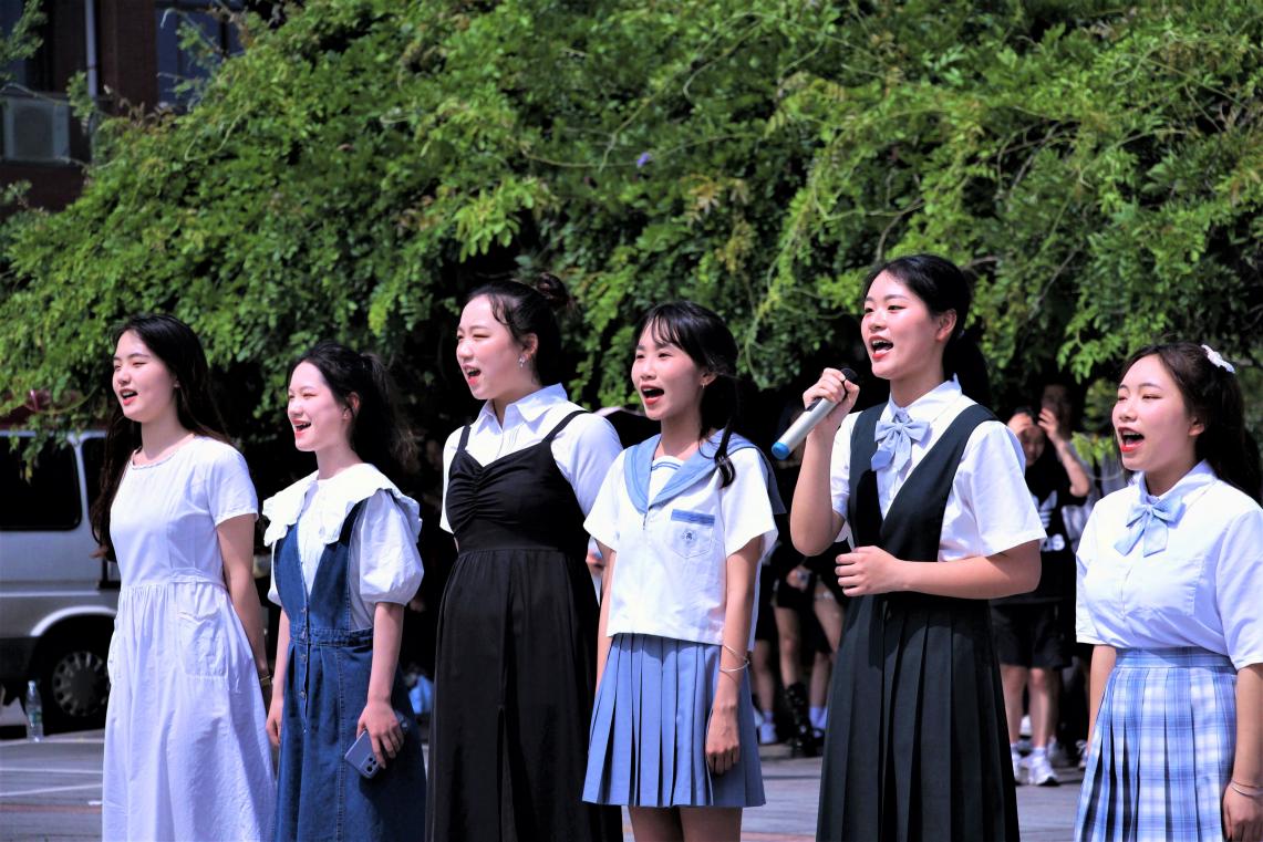 待毕业生们于祝福墙旁观赏签名留言贴后,主持人宣布本次欢送会正式开始。“那些年错过的大雨,那些年错过的爱情,好想告诉你,告诉你我没有忘记。”文艺部一首扣人心弦的《那些年》,道出多少毕业生在最后青春时光里的不舍、遗憾与迷茫。随后是感人至深的多人朗诵表演《青春颂》,“行而不辍,方知未来可期!鲜衣怒马少年时,不负韶华行且知!”表演者句句声情并茂、铿锵有力,抑扬顿挫的话语传递着学弟学妹们对毕业生学长学姐们的真挚祝愿,将欢送会气氛推向高潮。表演环节结束后,环亚官方网页版各领导老师与全体毕业生合影留念,所有感激、祝福与憧憬都定格于此刻。