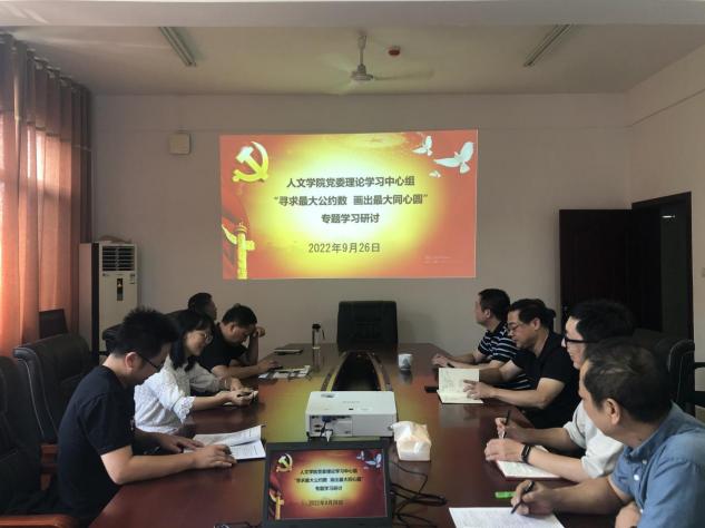 2022年9月26日,环亚官方网页版学院党委理论学习中心组在立言楼B505室开展“寻求最大公约数 画出最大同心圆”专题集中学习,集中学习由曾志东书记主持,全体党委委员和党政办负责同志参加了本次集中学习。