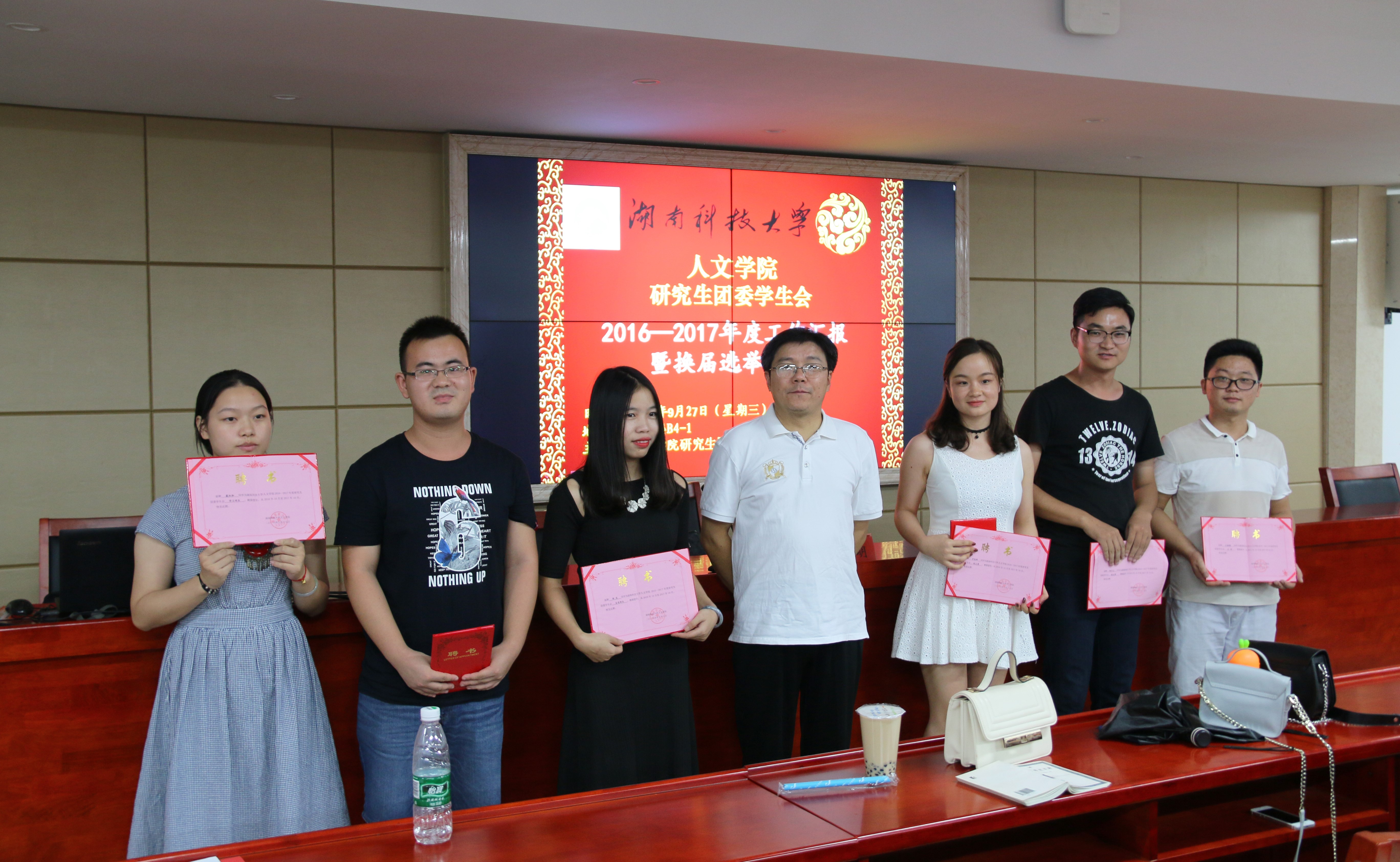 “落细落小,善作善成,善始善终。”学生会主席王植槐回顾了过去一年来,我院研究生团委学生会关于在校研究生的日常管理、研究生奖助评选等开展的一系列工作,以及过去一年中取得的丰硕成果。对于过去一年里学院领导、老师对研究生会工作给予的高度信任和大力支持,以及同学们的配合和理解,他表示衷心的感谢。研究生辅导员成伟明老师对研究生团委学生会的工作表示十分的肯定,并为其颁发聘书。