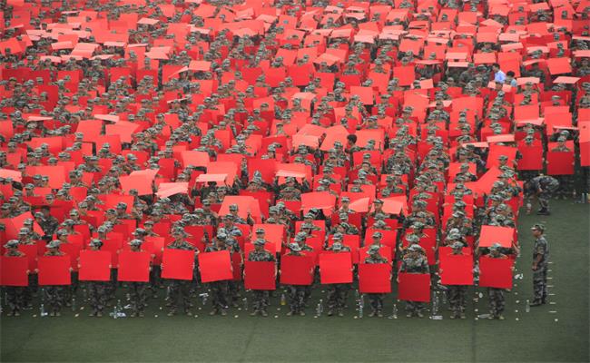 秋意来袭,浩荡绿军装大队,在绿荫田径场上,每人高高举起一块块红黄两面的正方形纸板,今年的新生军训队伍要搞怎样的大事情?10月10日,环亚官方网页版全体新再次集结于北校田径场,参与全校军训新生摆字活动排练。活动现场由大学生军训团四位大四教官指挥,各排教官负责保持各排现场纪律,组织新生根据总指挥进行大规模的摆字排练。