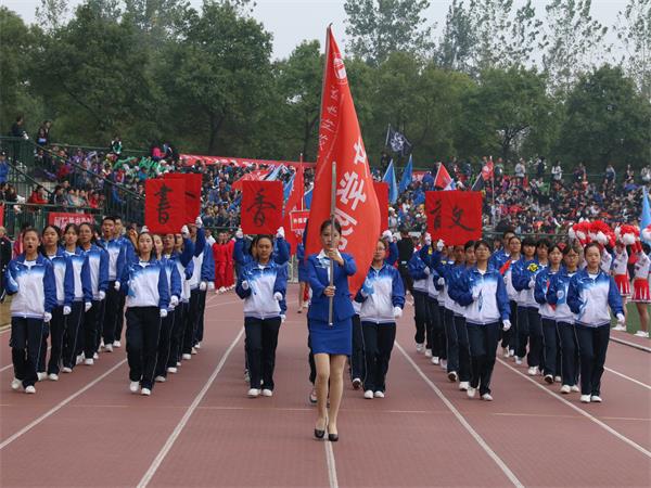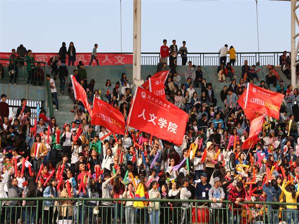 阳光旖旎,清风和煦。 10月26日上午,我校2017年秋季运动会在北校区新田径场隆重举行。我院各年级学生早早地便在观众席井然有序地入座,观众席上,战鼓擂,院旗招展,全院学生高举班旗,吹响加油的口哨,挥动五彩的加油棒,喊着人文的激昂口号,人头攒动,全场沸然,偌大的环形田径场上洋溢着空前的热情。