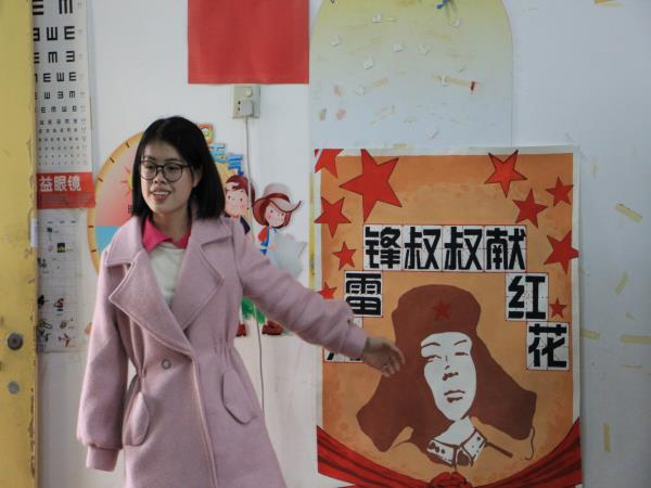 王嘉敏、曾思妍两位老师及志愿者们共同陪伴孩子们用彩笔画画。在老师和志愿者们的教导下,小朋友认真积极地学习绘画,孩子们认真地用彩色画笔填涂着图案,白色的卡纸上接连“绽放”出一朵朵鲜艳的花朵。志愿者协助小朋友们将各自的花朵作品剪下,张贴在雷锋海报上展示给小伙伴们看,在得到老师的赞扬后,每个孩子的脸上都露出了笑脸,开心地和志愿者拥抱。