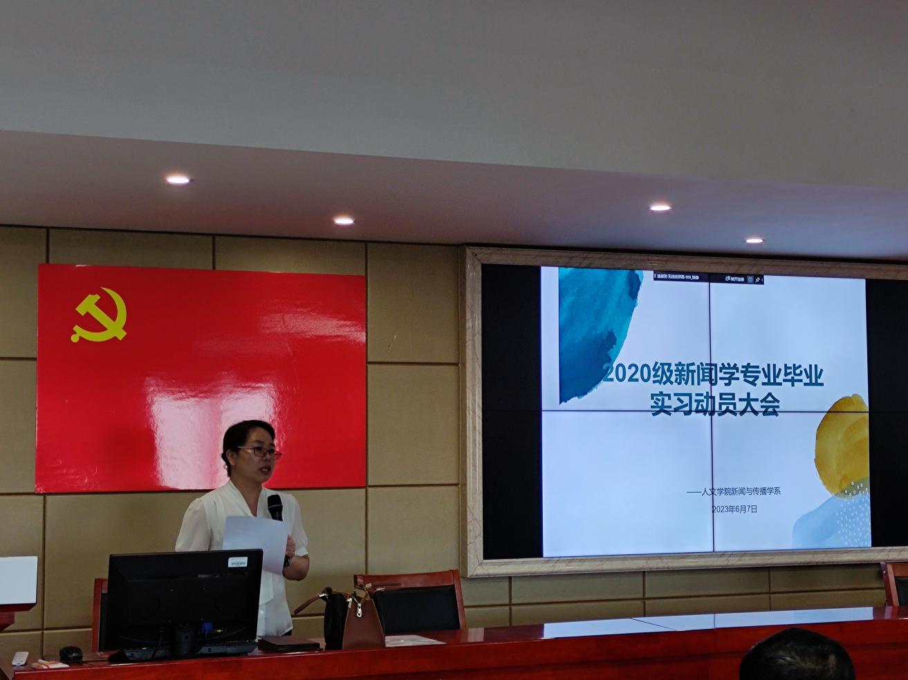6月7日下午,我院2020级新闻学专业毕业实习动员大会于立言楼B4-1室顺利召开。本次大会由环亚官方网页版新闻系主办,环亚官方网页版副院长袁星洁,新闻系主任刘艳凤、副主任王超群、新闻系老师、20级本部及潇湘新闻专业学生参加本次会议,会议由刘艳凤主持。