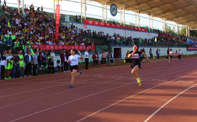 “砰!”随着一声枪响,16级历史二班的李柠早已一马当先地冲了出去。短短十几秒的时间,她已经完成了100米冲刺,“哇,好厉害啊!’’当李柠跑过终点线的时候,跑道旁的学生纷纷为李柠欢呼。而在接下来的女子4*100米决赛中,李柠与18级新生陶一丹、唐巧玲、彭喜梅凭借默契地合作,出色的实力,一举拿下季军。