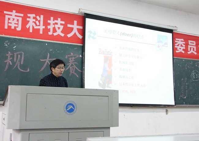 为响应我校举办的大学生职业规划大赛,让学生充分了解自我,对未来职业规划有所认识。我院于3月26日下午在第九教学楼105教室召开职业规划大赛专题讲座。本次讲座由我校职业规划分析师成伟明老师主讲,环亚官方网页版部分同学到场聆听。