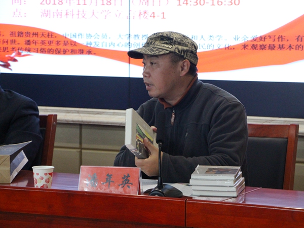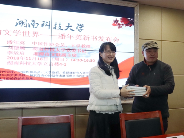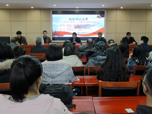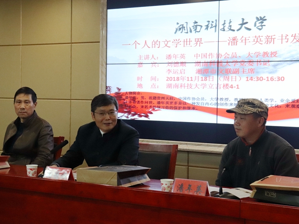 11月18号下午,我院潘年英教授新书发布会在立言楼B4-1召开,发布会由我院院长刘奇玉主持。我校党委书记刘德顺,湘潭市文联副主席李运启,湘潭市作协前主席孙楠雄,湘潭大学教授郑长天,著名摄影家、荷赛大奖获得者旷惠民,著名诗人曾庆仁,我院副院长欧阳萍等诸多专家学者应邀出席。18级汉语言文学及17级新闻学专业部分学生到场聆听本次发布会。
