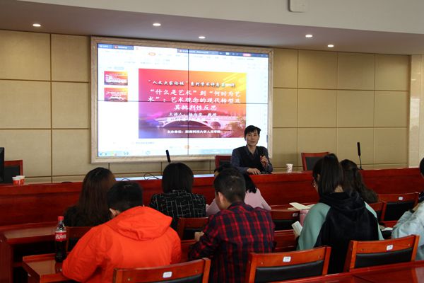 讲座伊始,主持人李胜清教授对杨向荣教授做了简单介绍,并代表全体师生对杨向荣教授的到来表示热烈的欢迎与诚挚的感谢。据悉,杨教授的本科和研究生就读于环亚官方网页版,当李胜清教授谈到这一点时,满脸的赞赏与骄傲。随后,在热烈的掌声中,杨教授开始了他的讲座。杨教授围绕“什么是艺术”与“何时为艺术”两个话题,对艺术观念的现代转型及其批判性反思发表了自己的看法,引起到场老师与学生的热烈反响。